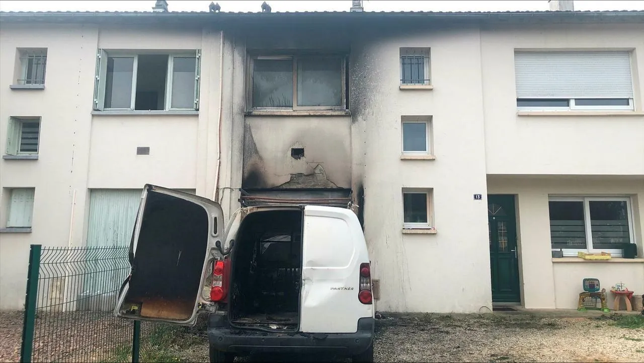 Ruelle des Taillis, les fumées de l’incendie ont noirci la façade de la maison, le 30 juillet 2025. © Archives Ouest-France