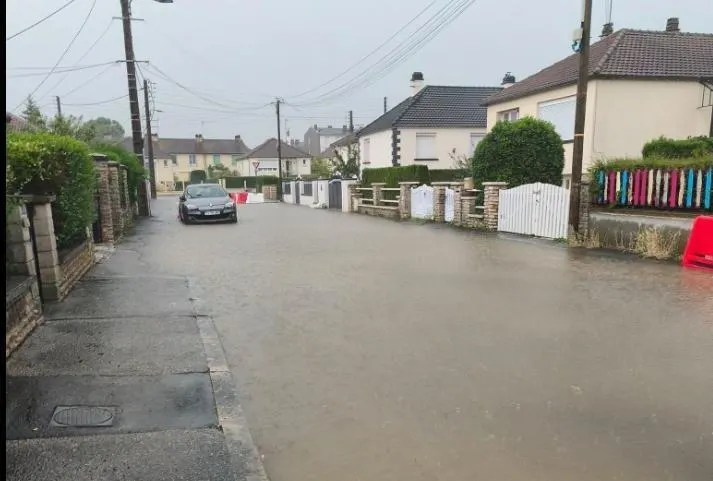La rue du 6-Juin-1944 dans le quartier Saint-Michel à Argentan (Orne), après les fortes pluies du mercredi 25 juin 2025. © Capture Facebook