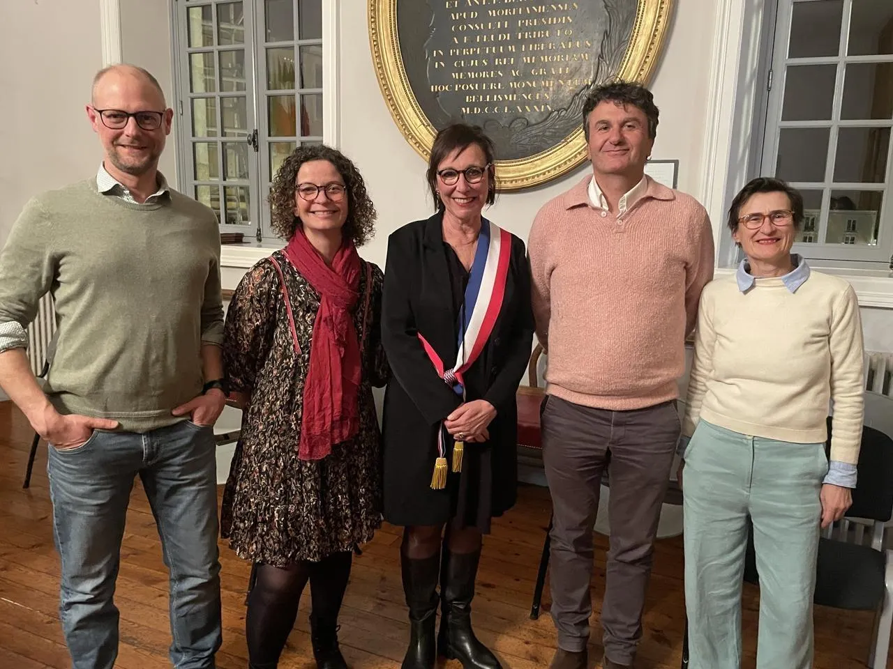 Catherine Lemeux et Olivier Voisin entourés de leurs adjoints : Renaud Lateur, Vanessa Blatrix et Caroline Datner. Ouest-France