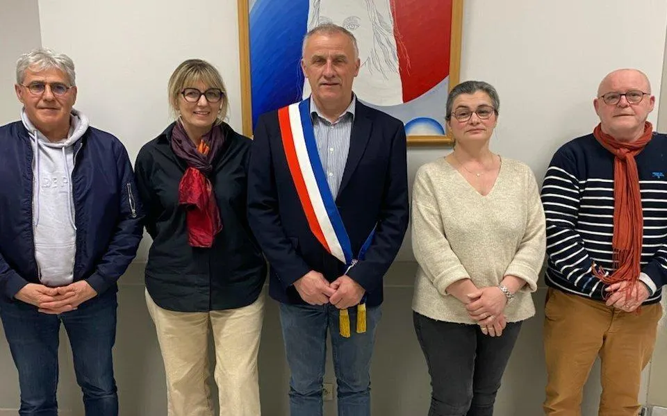 De gauche à droite : Laurent Poulain, 2e adjoint, Fabienne Bontemps, 3e adjointe, Jean-Luc Beaufils, maire, Stéphanie Robin, 1re adjointe, Yves Prudon, 4e adjoint. © Ouest-France