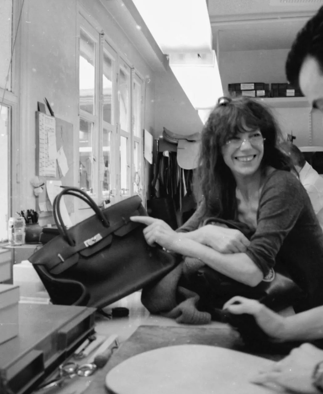 Jane Birkin visitant les ateliers de création Hermès. © Gabrielle Crawford