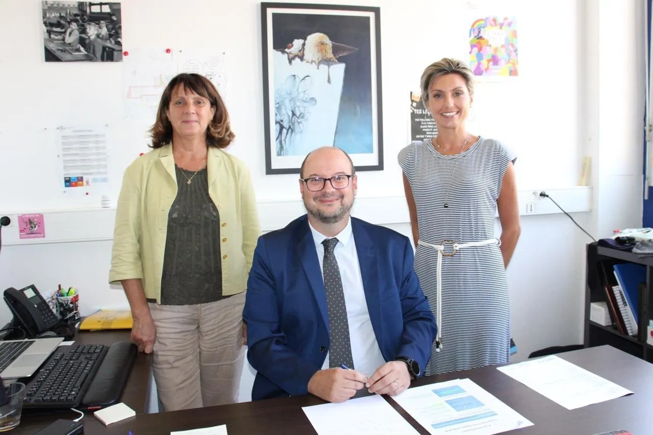 Jérémy Lamy, nouveau principal, aux côtés de Nadia Requier (gestionnaire, à gauche) et de Laëtitia Foëzon (secrétaire de direction, à droite). © Ouest-France