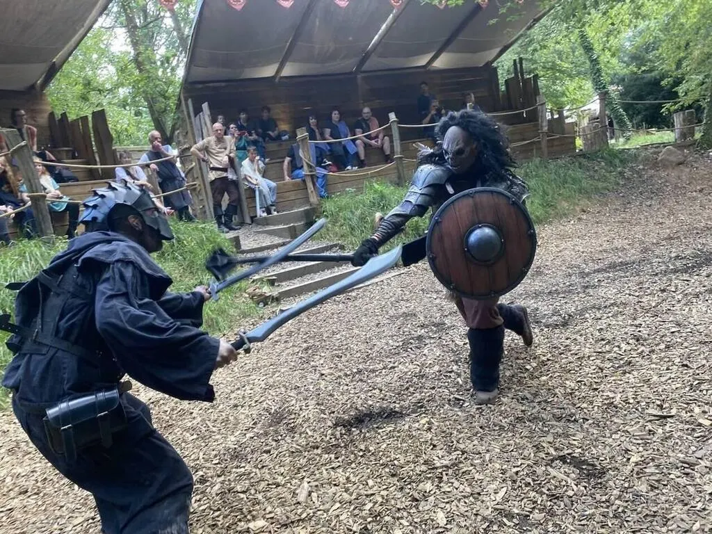 Tous les visiteurs reçoivent un costume et un objectif à accomplir dans la journée. Ils peuvent également passer du temps à la taverne – l’espace restauration qui propose davantage de mets cette année -, affronter des monstres lors des tournois de l’arène, faire du tir à l’arc, du lancer de haches… Tout cela à leur rythme.