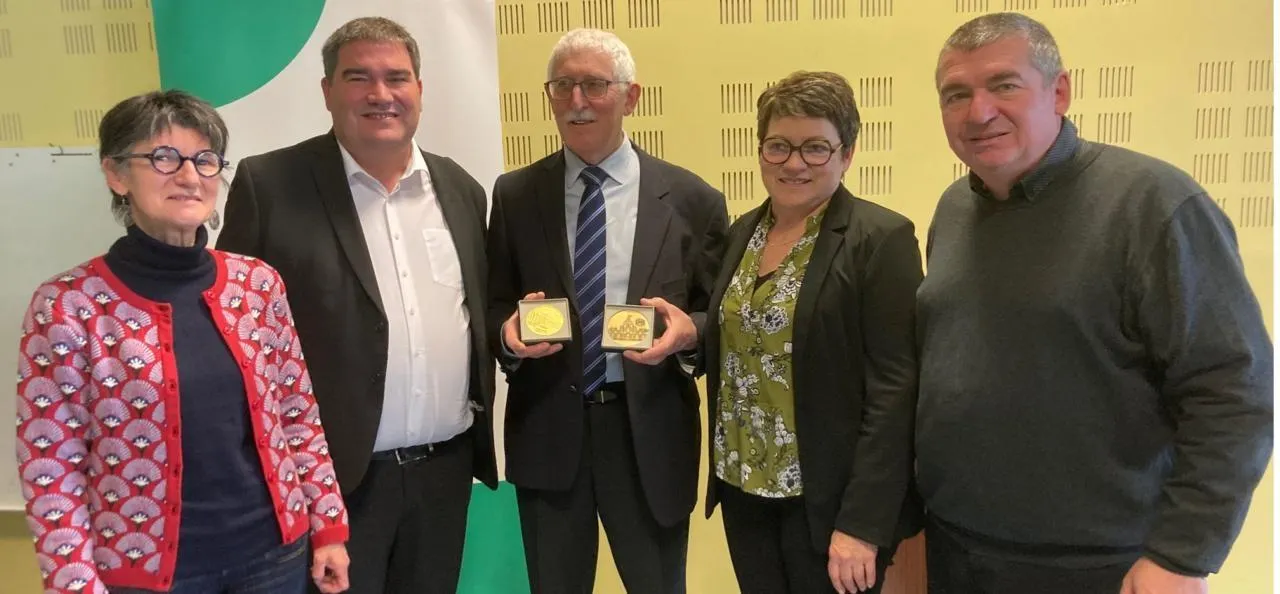 Sylvain Jarry a reçu la médaille du Sénat des mains d’Olivier Bitz, sénateur, et celle de l’Assemblée nationale, de Chantal Jourdan, députée.