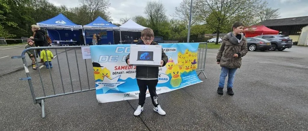 C’est le jeune Louis, actuellement en vacances dans la région, qui a remporté le gros lot avec un PC portable grâce au canard portant le n°4, arrivé premier. Les lots sont à retirer au magasin Connexion de L’Aigle, avenue de la Comtesse-de-Ségur.
