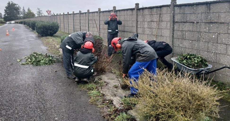 Enfin, cette semaine, un formateur des Compagnons du devoir et Mickaël Hérault, chargé de développement de la structure, accompagnent six salariés en insertion, à travers différents chantiers identifiés avec le responsable des espaces verts de la ville.