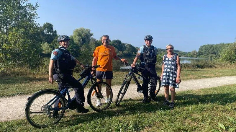 Des patrouilles à vélo ont été effectuées près de l’étang de la Croix-Lamirault. © Ouest-France
