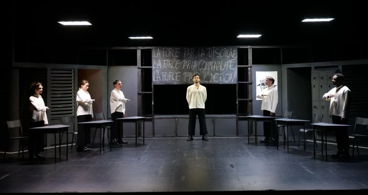 Pour ce premier spectacle de février, la scène aiglonne présente La Vague, d’après le roman de Todd Strasser, et l’histoire vraie de Ron Jones (texte français d’Aude Carlier). La compagnie Les Chiens Andalous s’empare d’un sujet qui décrit  les mécanismes d’embrigadement d’une jeunesse en manque d’avenirÂ