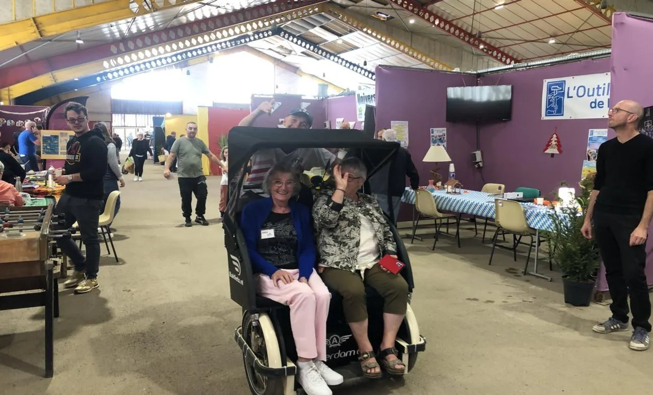 Au forum des associations, du lien social et intergénérationnel à triporteur. Au guidon, Hugo Dupont, directeur. © Ouest-France