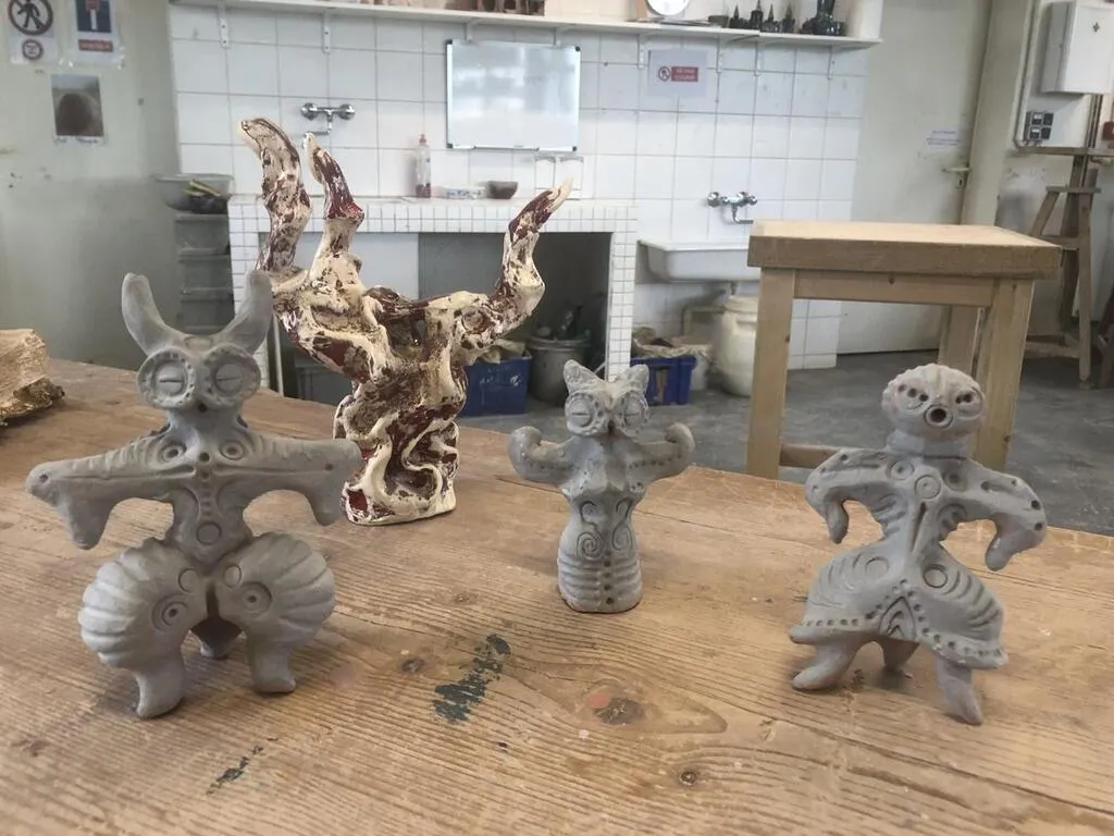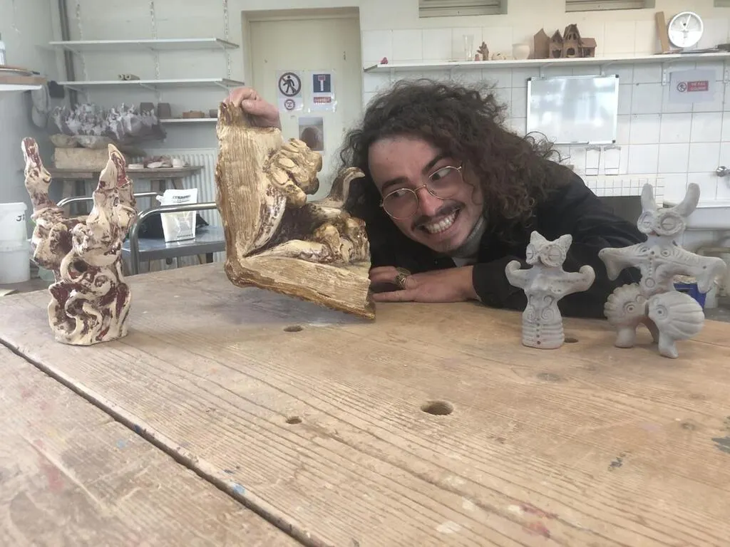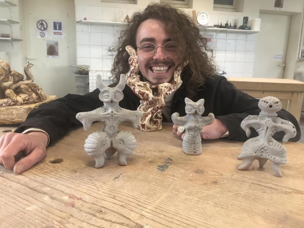 Les Å“uvres en céramique d’Ox peuvent se montrer dangereuses. Ici, l’une d’elles tente de le manger. © Ouest-France