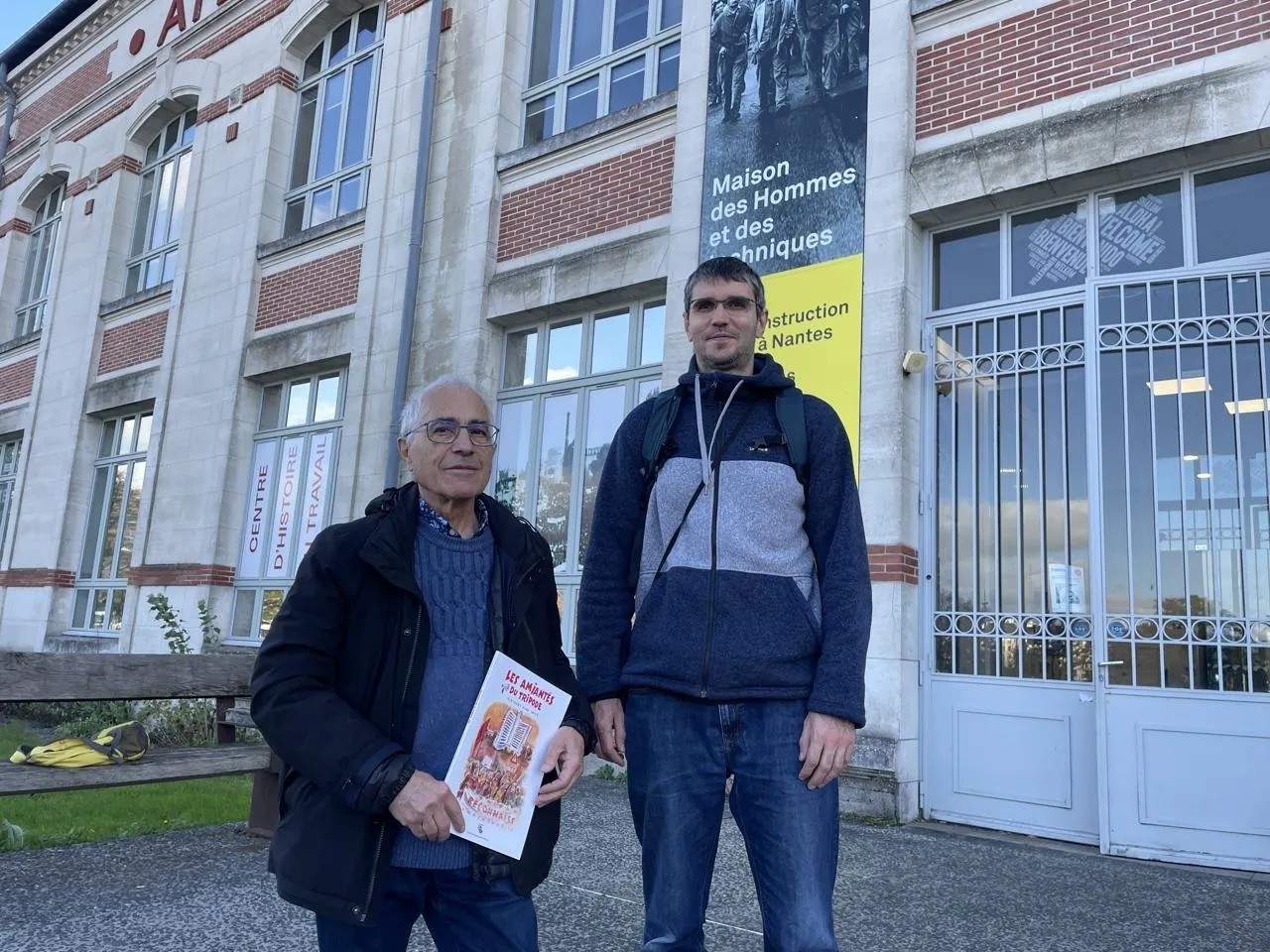 Alexandre Kerhervé et Francis Judas préparent un nouveau support de témoignage pour rappeler que « c’est la mort qui est derrière l’emploi de l’amiante ». © Ouest-France