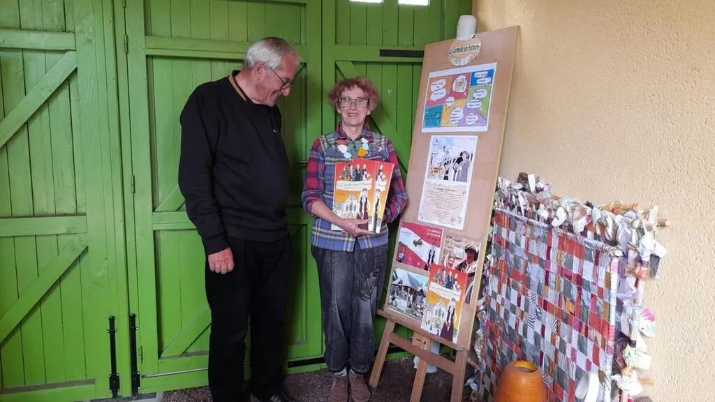 Claude Guibout, président de l’association La Carneille en histoire, et Gine Guibout, présentent la BD « La Carneille dans l’Histoire ». © DR