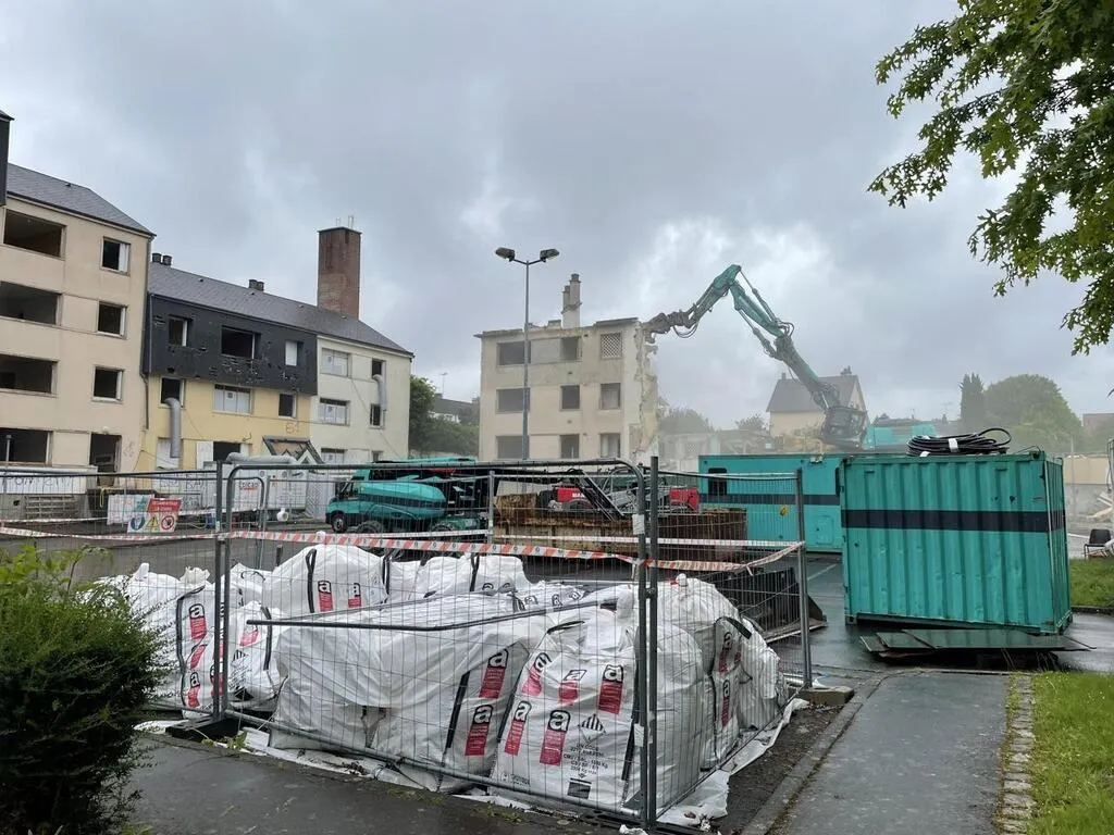 La démolition de quatre bâtiments situés allée Ampère et rue Jules-Verne, à Flers (Orne), avait débuté le 25 mars 2025. Le bâtiment appelé les Criquets a été démoli et la destruction des autres continue.
