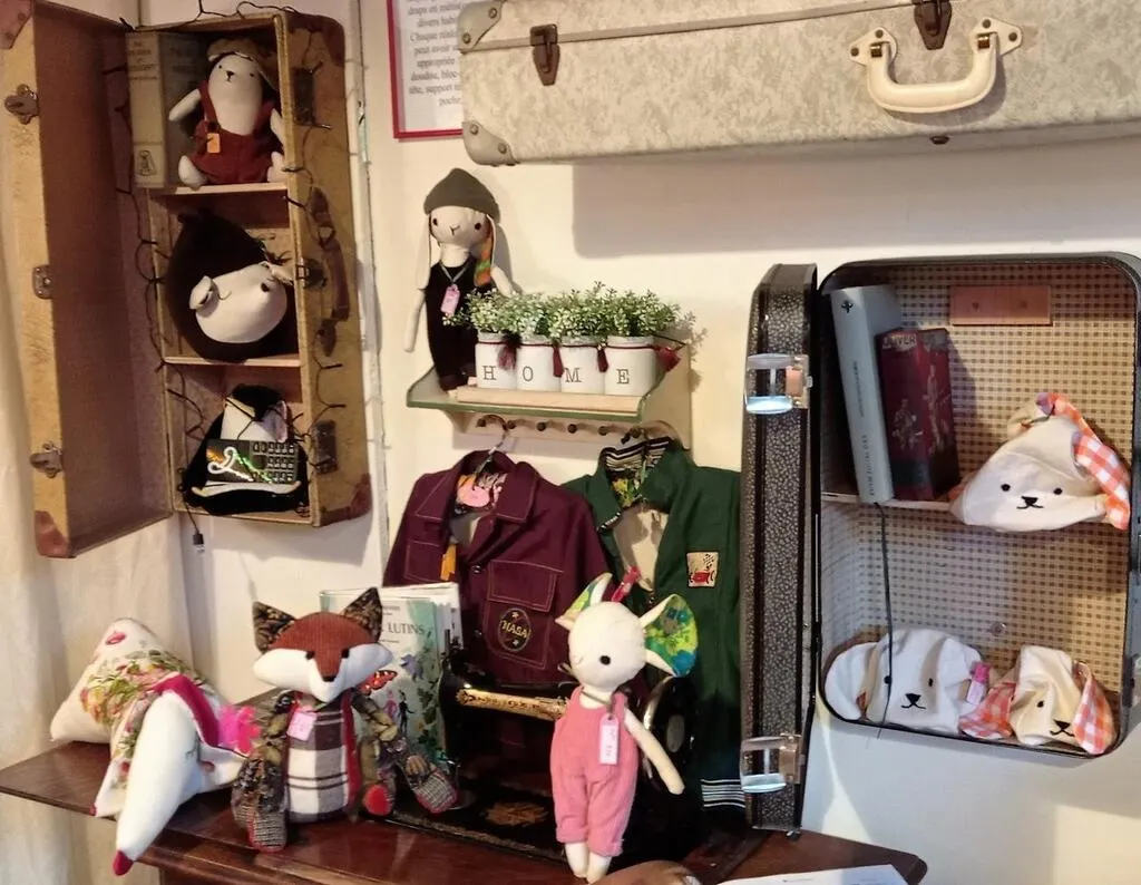 «  Devant la quantité de mes créations j’ai décidé d’en mettre en vente, avec aussi des percussions du monde. J’ai bénéficié de la libération de cet espace début février. Le temps de l’aménager et la boutique a ouverte il y a un mois. Avec Kate, nous avons convenu de la création d’ « un espace deux ambiances », (rires). Kate est une passionnée de couture. Elle réalise toute une gamme de personnages animaliers à partir de recyclage de tissus et de vêtements. On y trouve aussi des doudous, bloc portes, support téléphone, vide-poche… Il va sans dire que chaque création est unique. »