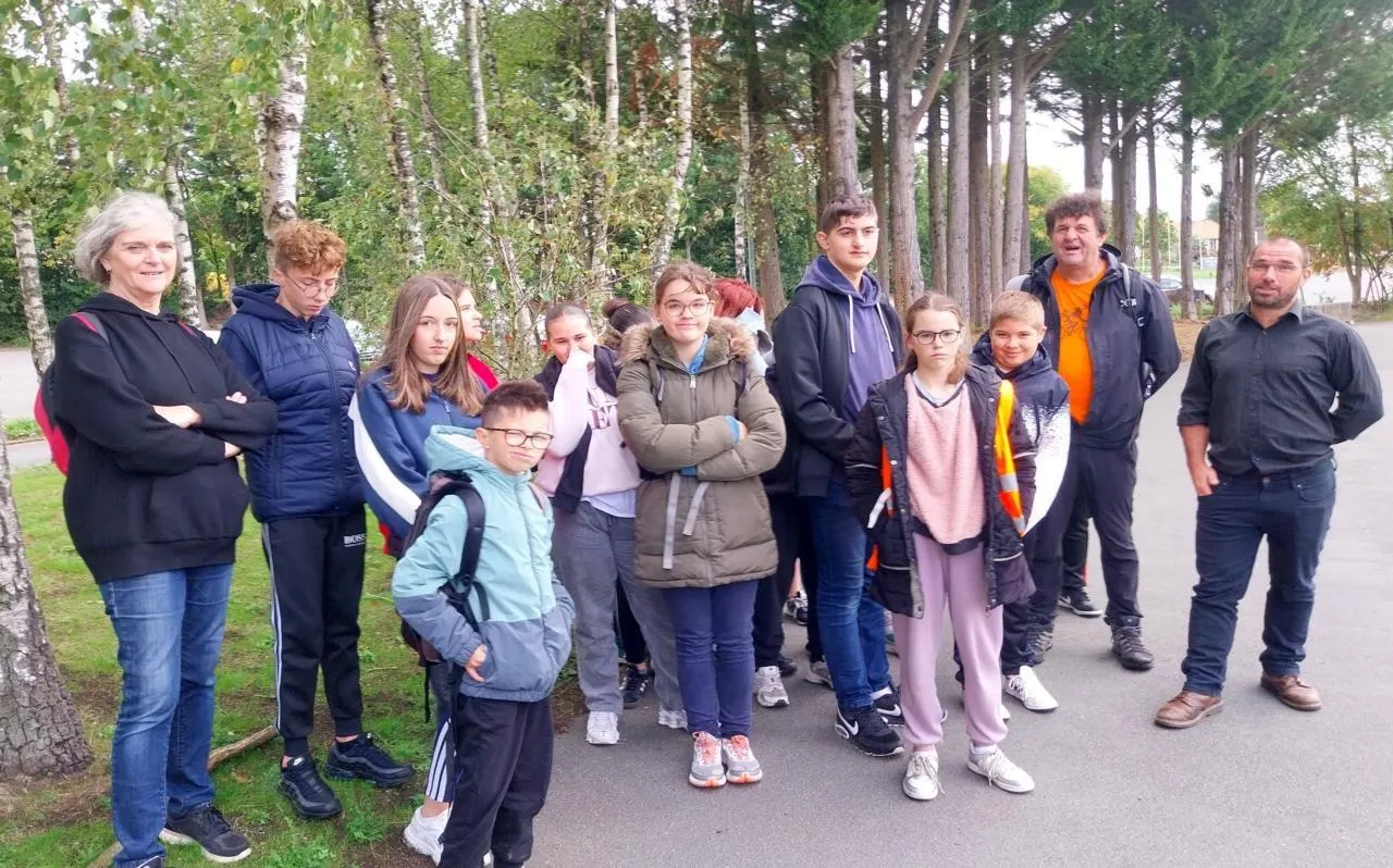Un groupe d’élèves accompagné de deux professeurs, Nathalie Colin et Marc Lecornu, a découvert le circuit des Bornes cavalières, avec Éric Leblanc, le directeur de l’établissement (à droite). © Ouest-France