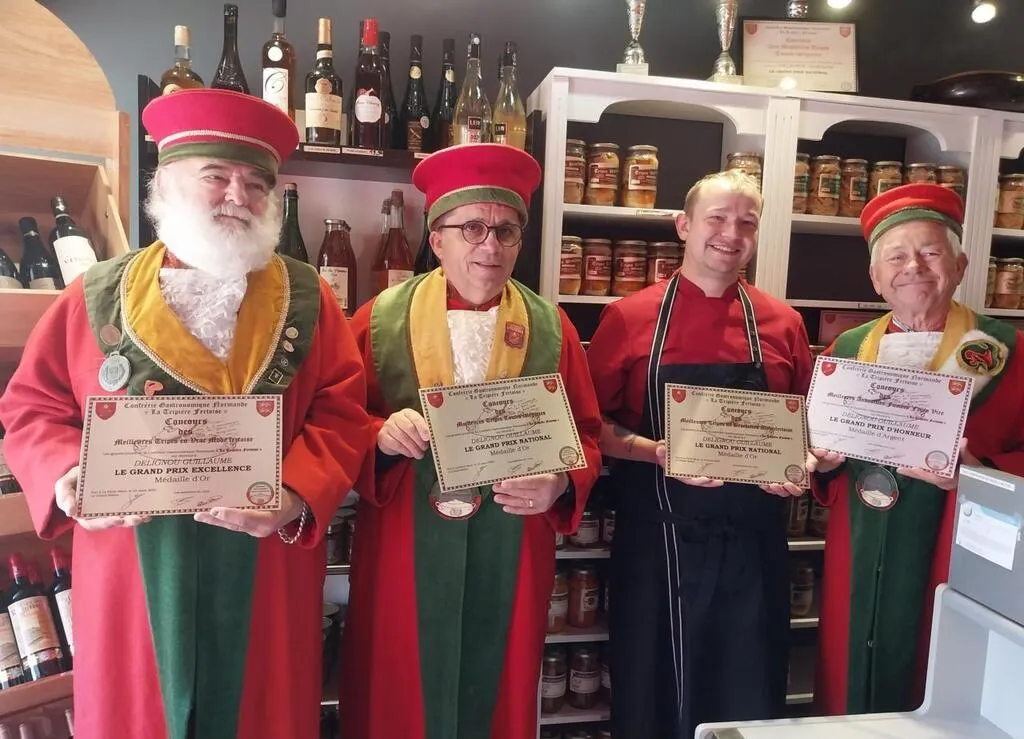Guillaume Delignou, propriétaire de la Maison de la tripe, place Leclerc, a obtenu quatre diplômes : le grand prix national médaille d’or pour les meilleures tripes en brochettes, ainsi que pour les meilleures tripes toutes catégories ; le prix d’excellence, médaille d’or, pour les meilleures tripes en vrac ; et le grand prix d’honneur, médaille d’argent, pour les meilleures andouilles fumées façon Vire.