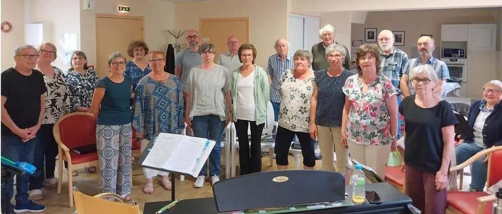 Les choristes de la chorale Oh les cœurs, lors d’une répétition. À gauche, le pianiste, Christian Laurent, et la cheffe de chœur, Pétra Desvois. © Ouest-France