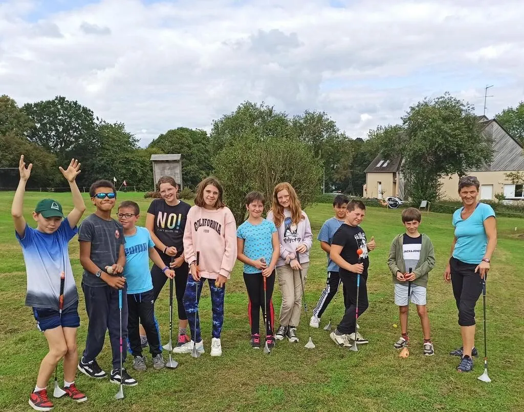 Les élèves de la classe de 6e ont suivi ensemble une semaine d’intégration. Ils se sont exercés à différents sports (swin-golf sur la photo). À droite, Anne-Paule Flambard, leur professeure d’éducation physique et sportive. © Ouest-France