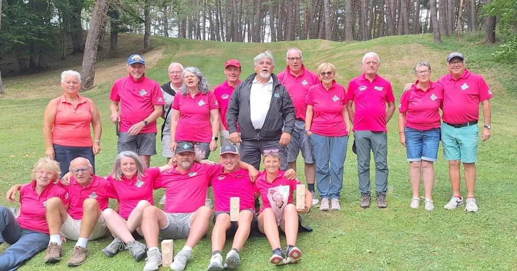 Les dix-sept Fertois qui ont participé au championnat de France de swin-golf en double à Montenois (Doubs). Au deuxième rang, au centre, le président du club, Jean-Pierre Tanguy. © Ouest-France