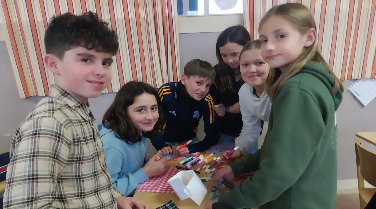 Les collégiens de Notre-Dame ont apporté leur morceau de tissu pour fabriquer une guirlande, dans un travail de groupe. © Ouest-France