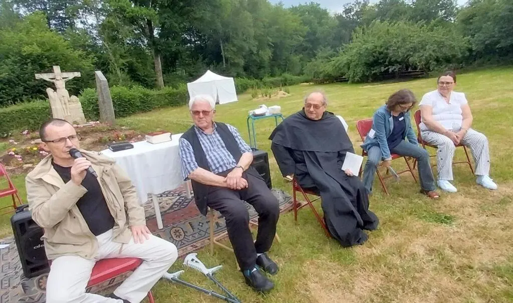 Après l’accueil et un temps de prière au Pré Marie, pour les personnes atteintes de cancers ou de longues maladies, les pèlerins se sont rassemblés pour écouter des témoignages de guérison. Denis, habitant à Bagnoles-de-l’Orne, atteint d’un lymphome, a présenté son parcours avec beaucoup d’émotion. En 2017, la médecine lui donnait une espérance de vie d’un an. Après avoir prié et porté la médaille de Saint Pérégrin, bénie par le frère Rock, il a eu une rémission de son cancer. Ensuite je suis devenu pratiquant,
