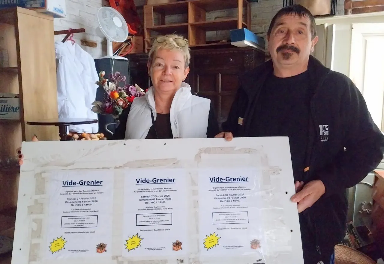 Les gérants de la brocante aux Bonnes affaires, Denis Schweitzer et Nathalie Davaine, organisent un vide-greniers caritatif samedi 7 et dimanche 8 février. © Ouest-France