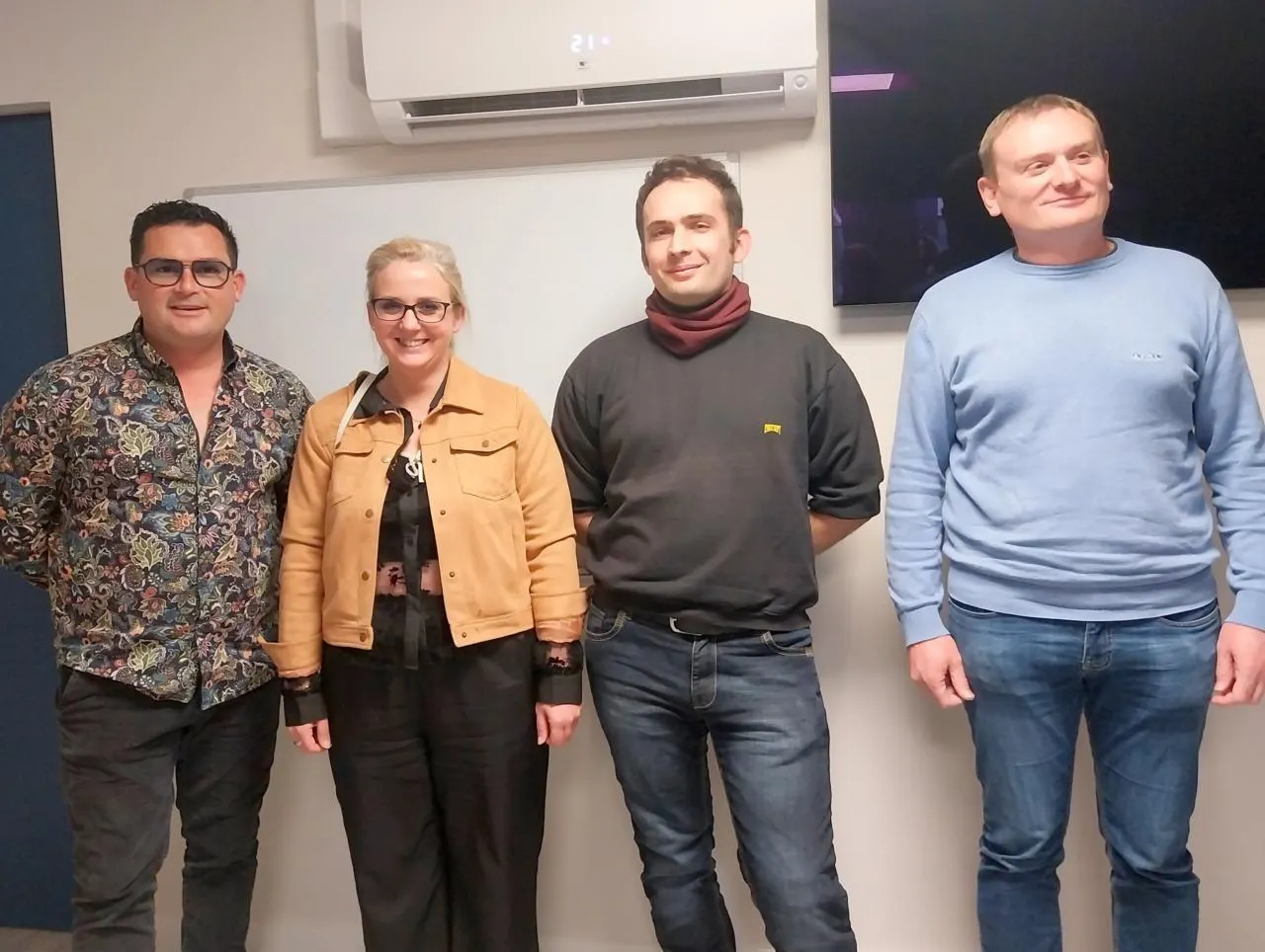 De gauche à droite : Jérôme Binet, copropriétaire, Constance Boin et Rafael Gonzalez, formateurs, et Stéphane Leprince, copropriétaire. © Ouest-France