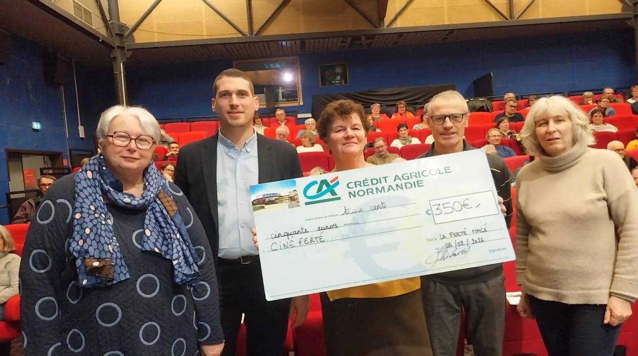 À l’occasion de cette soirée, les responsables de la caisse locale de crédit agricole ont remis un chèque de 350 € à l’association Ciné Ferté pour aider à l’achat d’un ordinateur.
