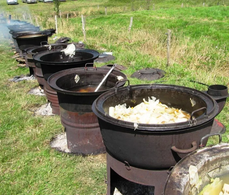 Lors de la fête à l’ancienne, les bénévoles amènent les chaudrons afin de préparer le repas campagnard qui rassemble entre 1 000 et 2 000 participants. © Archives Ouest-France