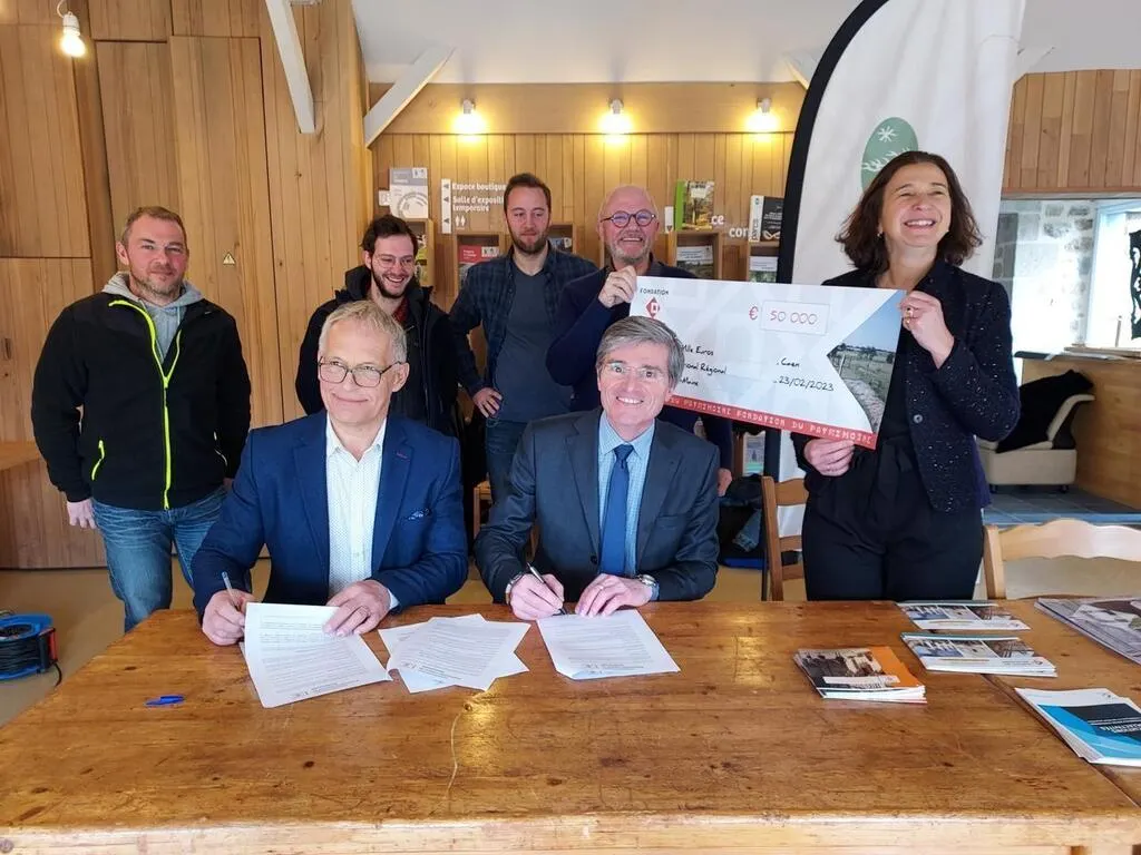 Une convention a été signée jeudi 23 février 2023, entre la Fondation du patrimoine et le parc naturel Normandie-Maine. © Ouest-France