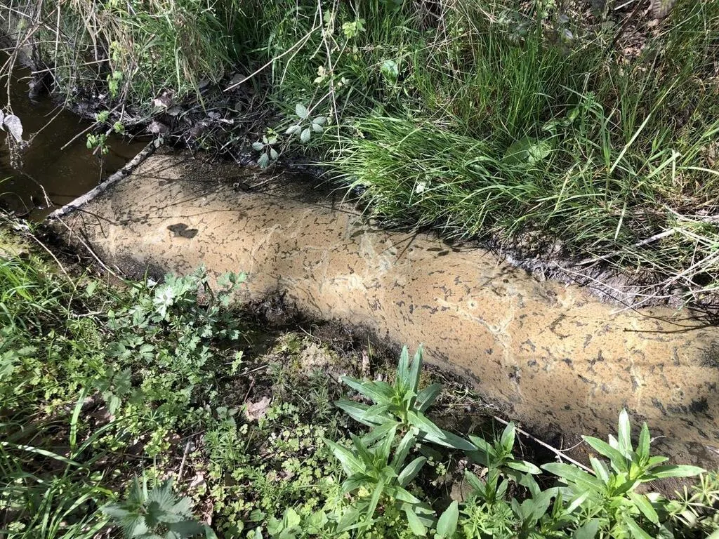 La pollution est apparente dans l’eau du petit ruisseau du Pont aux ânes, à Saint-Jean-de-la-Forêt (commune nouvelle de Perche-en-Nocé). © Ouest-France