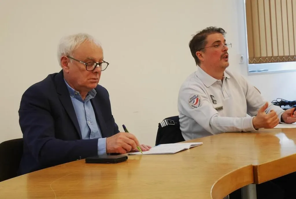 Le maire, Gérard Lurçon, à gauche, le directeur départemental adjoint de la police nationale, Thomas Alvarez, ont présenté leurs propositions d’action. © Ouest-France