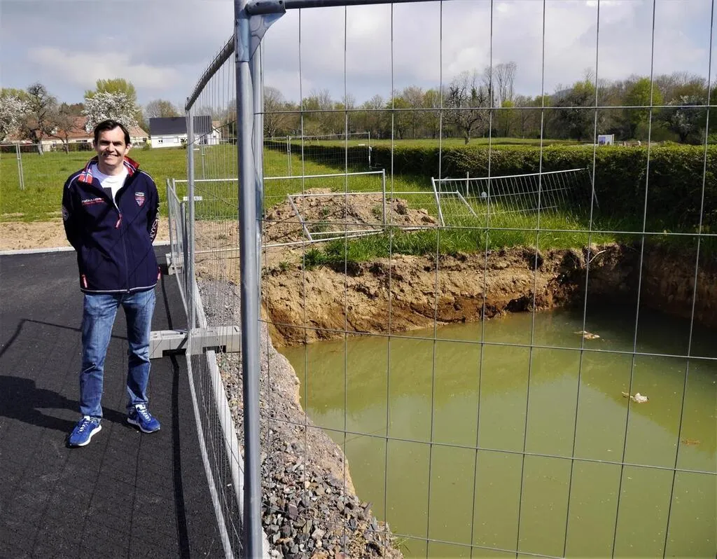 Le maire, Guillaume Julien, devant l’emplacement qui va accueillir les conteneurs semi-enterrés de l’espace propreté, qui complète les aménagements du vaste espace culturel et sportif. Ouest-France