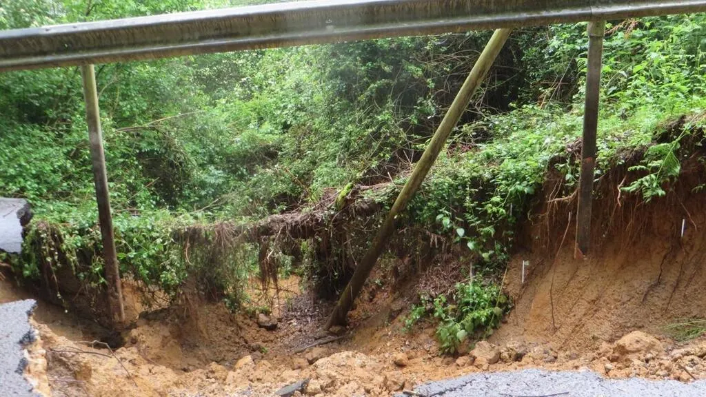 La pluie provoque un effondrement et un énorme trou en Normandie, la route fermée à la circulation... |