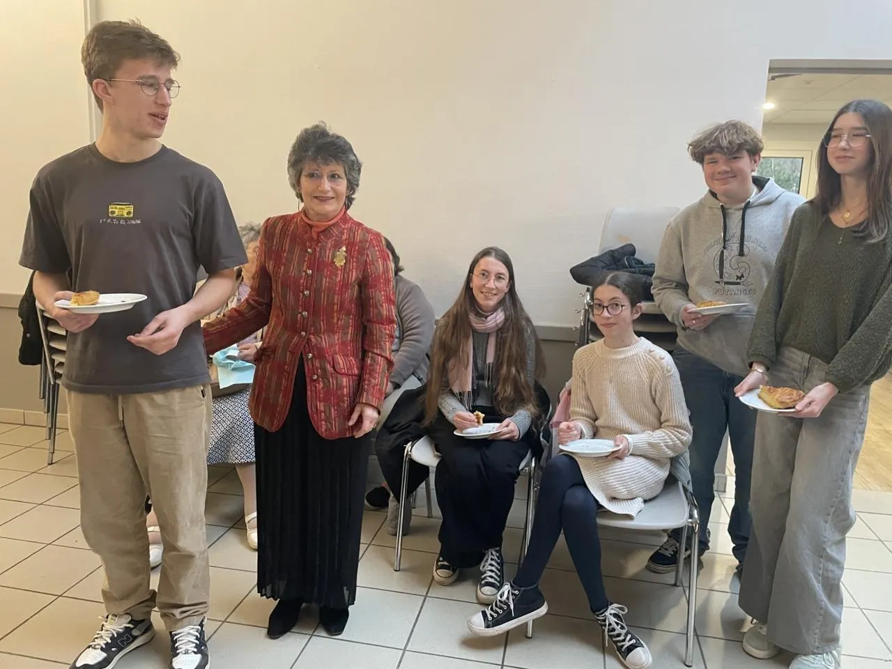 Alix Dauger au milieu de jeunes habitants de la commune, lors de la cérémonie des vœux. © Ouest-France