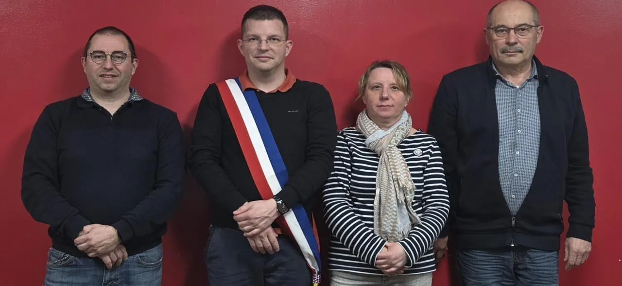 De gauche à droite : Steve Lesimple (troisième adjoint), Maxence Sebert (maire), Magali Delaunay (deuxième adjointe) et Philippe Bedel (premier adjoint). © transmise par la commune