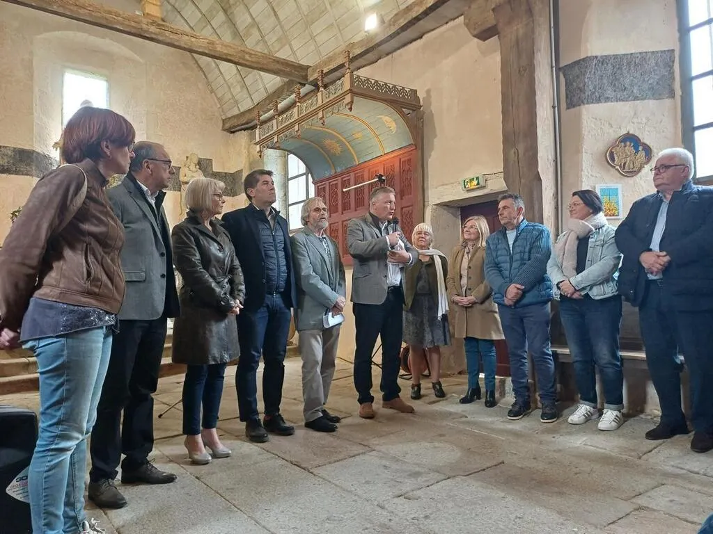 Samedi matin, l’église de Saint-Malo a fait salle comble, élus, membres de l’association Les amis de l’église de Saint-Malo, mécènes, représentant de la Fondation du patrimoine et visiteurs se sont réunis pour l’inauguration du baldaquin datant du XVe siècle. © Ouest-France.