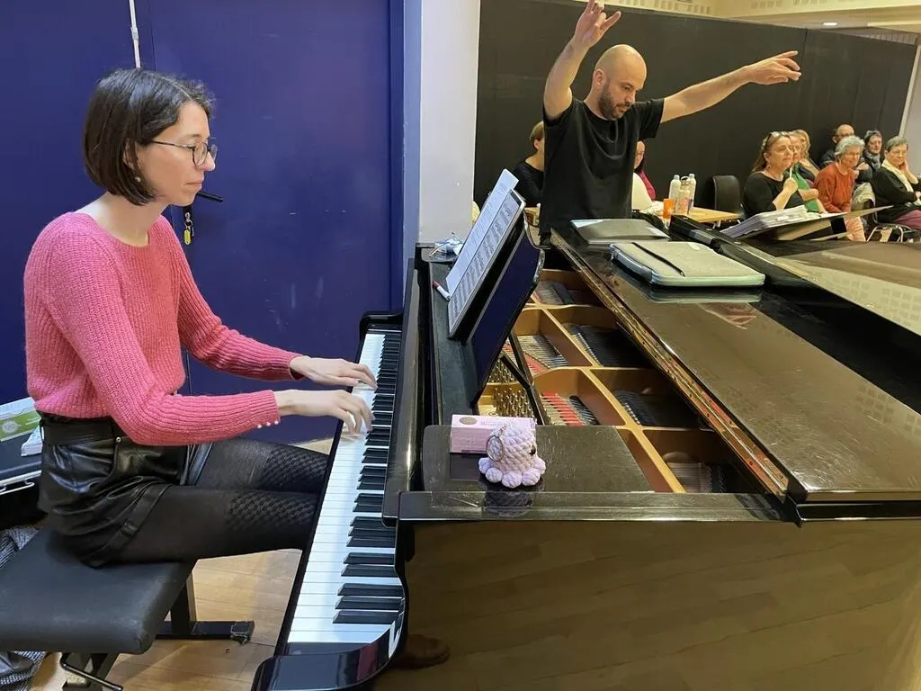 Aude Fabre, Ã droite, donne ses directives aux chanteurs professionnels comme aux amateurs. © Ouest-France