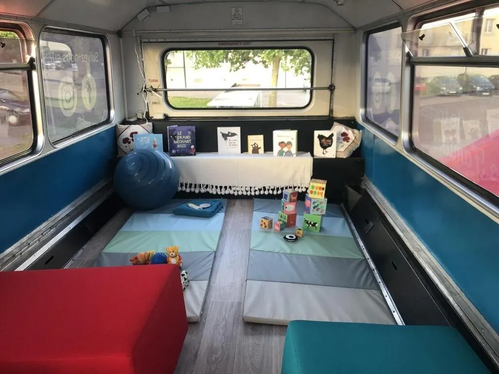 Inauguré vendredi 7 octobre 2022 à Argentan (Orne), le bus circule avec à bord, Élisabeth Hurel, animatrice du bus et Sandrine Toutain, animatrice 1 000 premiers pas. Elles proposent diverses activités et comptent également sur les associations locales pour s’approprier le bus et organiser des rendez-vous et événements en tout genre. « Elles font aussi le lien avec les associations locales et les collectivités », explique le président de l’Udaf.