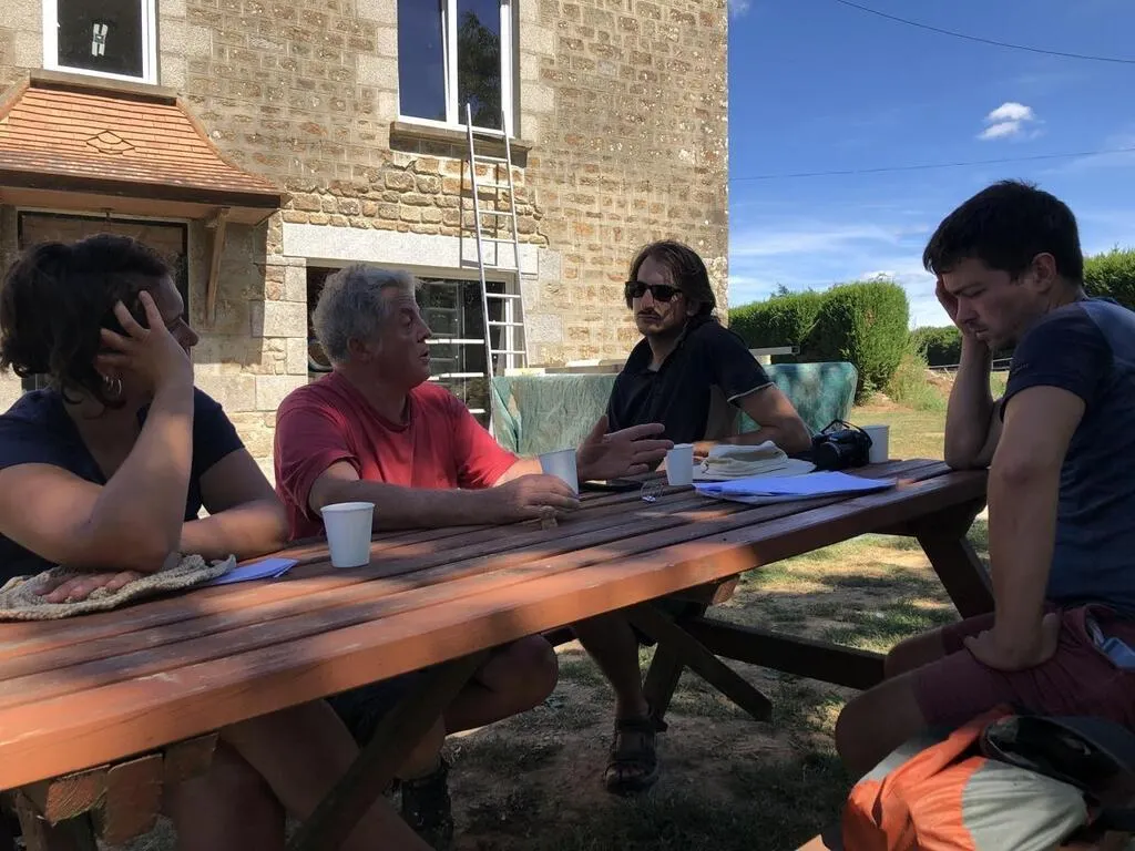 Xavier Maunoury, agriculteur laitier bio au Châtellier (Orne), répond aux questions des participants au camp d’été Alterfixe. © Ouest-France