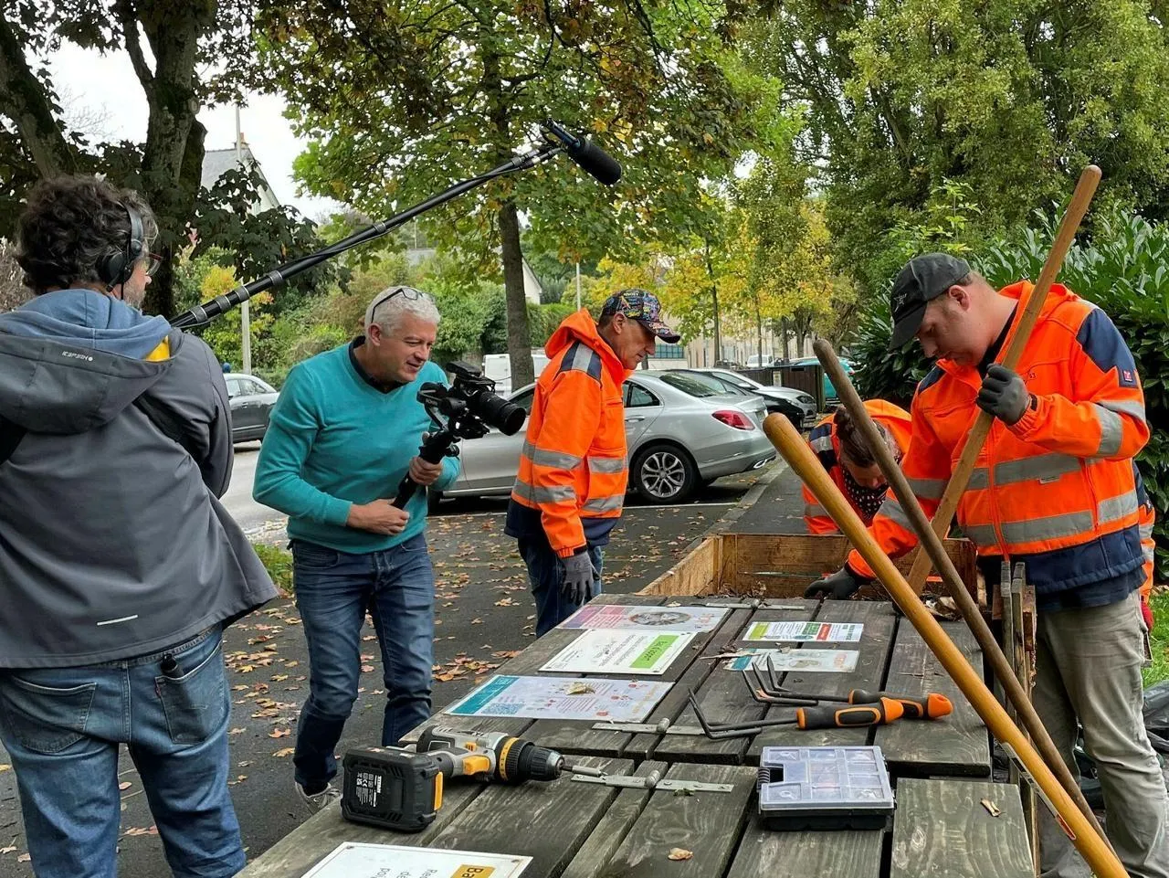 Le tournage du film documentaire Utopie zéro chômeur a démarré, à Laval, en mars 2024. © Filmsdelymagier