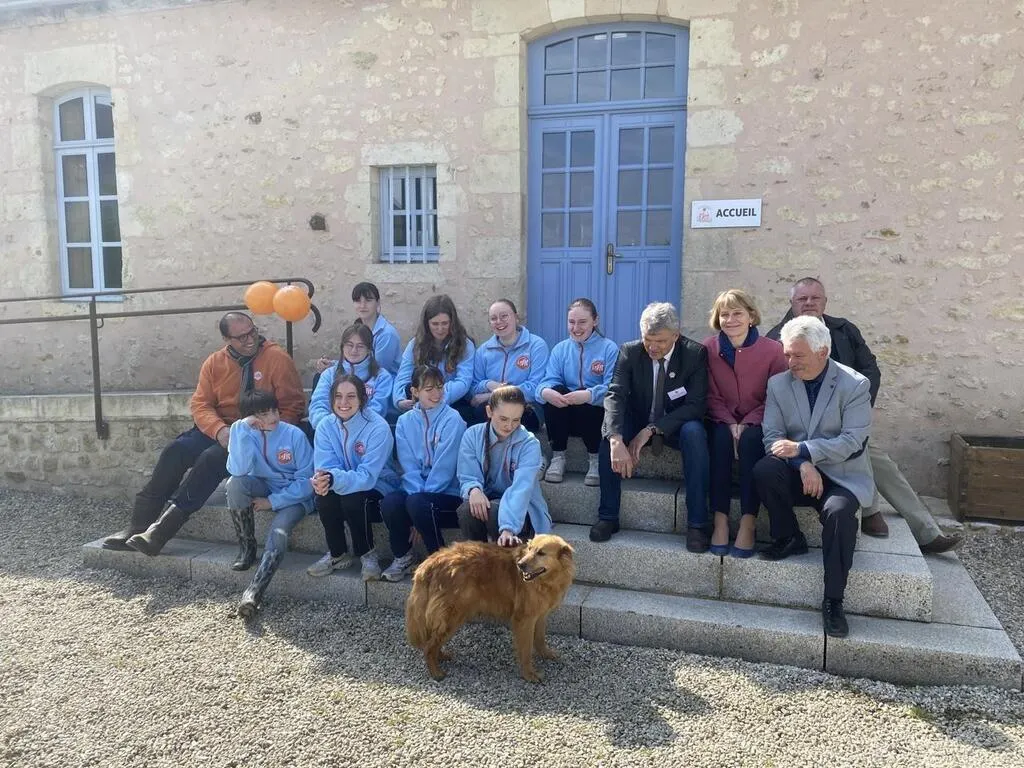 David Legrand (au centre), fondateur du refuge et aujourd’hui directeur de l’expertise animale, et Stéphanie Girard (à droite), responsable du site, ont accueilli le président de la SPA, Jacques-Charles Fombonne, pour l’inauguration, vendredi 26 avril 2024. © Ouest-France