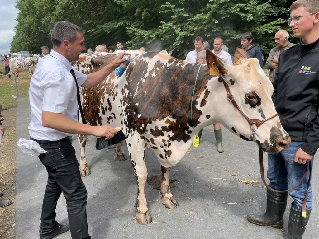 « Il y a treize catégories différentes, en fonction du nombre de veaux qu’a fait chaque animal », explique Florent Enjalbert, vice-président de Normande 61, l’association organisatrice. Les animaux viennent de tout le Grand Ouest, de la Vendée à la Somme mais aussi deux en provenance… du Cantal.