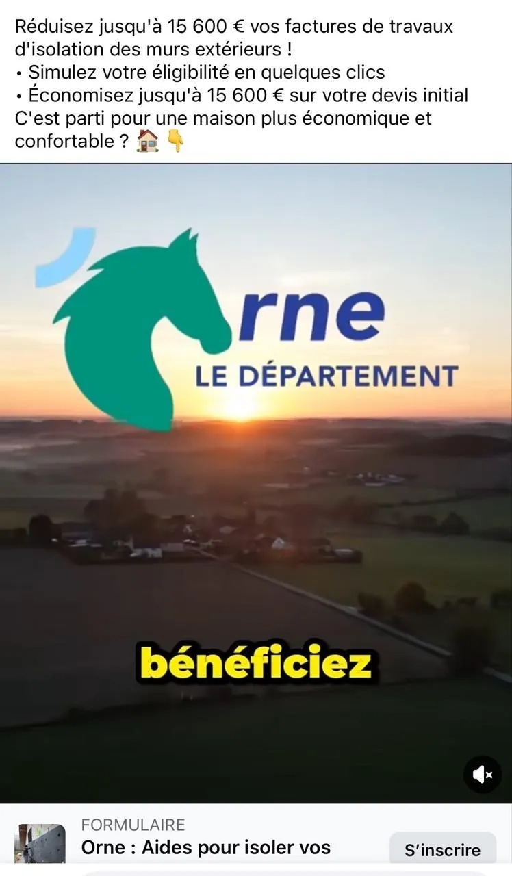 Sur la publication Facebook, on distingue le logo du conseil départemental de l’Orne, avec sa tête de cheval. L’image est accompagnée de quelques lignes qui annoncent des aides financières en contrepartie de travaux de rénovation énergétique dans les maisons. Au premier coup d’œil, on se dit que la campagne est lancée par le Département mais il n’en est rien. Et c’est ce qui fait sortir de ses gonds le président Christophe de Balorre.