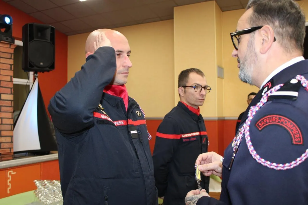 La soirée a été l’occasion de décorer deux pompiers : Kris Schneider a reçu la médaille d’argent pour vingt ans de service, et Quentin Divet, la médaille de bronze pour dix ans. Trois pompiers ont également été promus : Mathieu Jacquelin (1re classe), Jérôme Lhérault (caporal-chef) et Patti Pérotin (caporale cheffe).