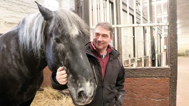 Anthony Gohier est le chef d’équipe du centre de valorisation du Haras du pin. Ici avec Espoir, un percheron de cinq ans. © Ouest-France