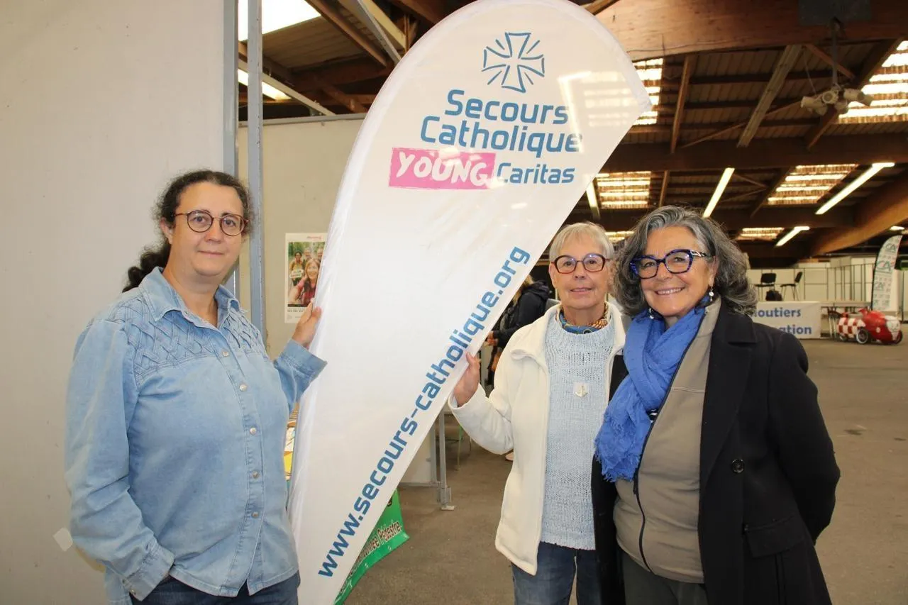 De gauche à droite : Claire Duvignac, Brigitte Letourneur et Sandrine Torossian ont passé la journée sur le stand du Secours catholique au forum des associations de Vimoutiers (Orne). © Ouest-France