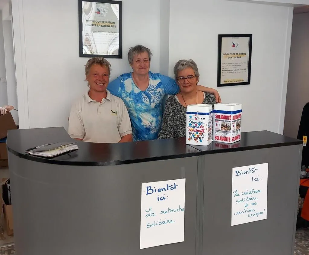 De gauche à droite Anne Maillot, Marie Claude Leroi et Nathalie Bedo, bénévoles au Secours populaire © Ouest-France.