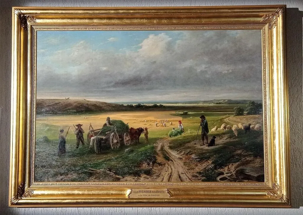 photo  le tableau « la moisson », d’ernst schalck, a retrouvé majestueusement sa place, à droite de la porte du musée charles-léandre, en mairie de domfront.  ©  ouest-france 2