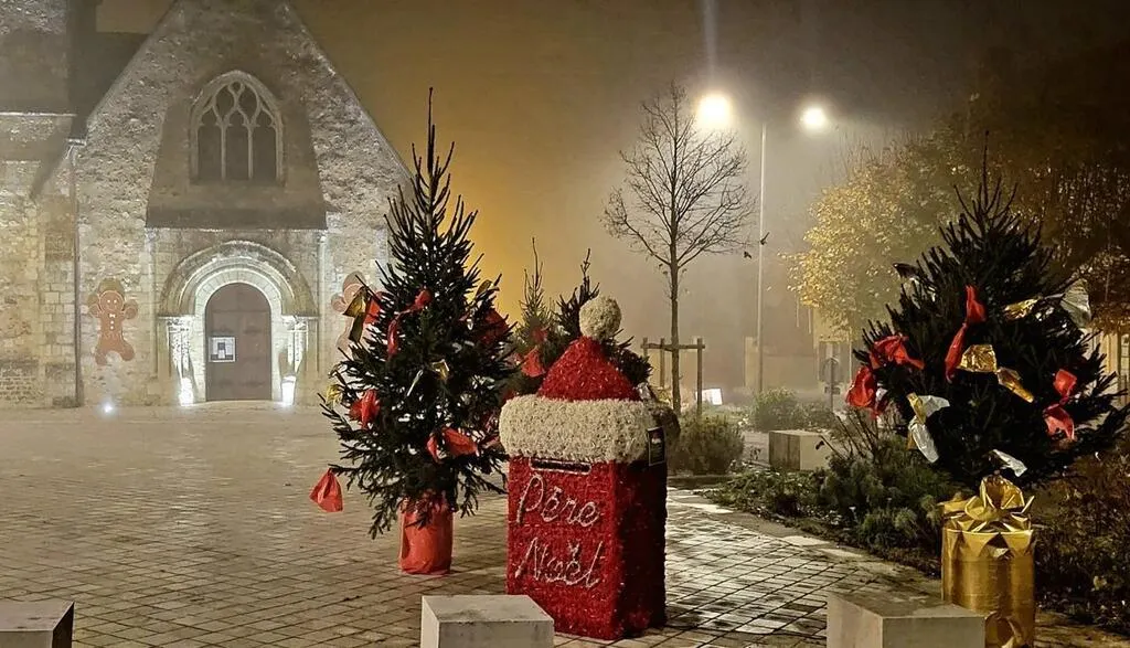 La place des Teilleuls, épicentre des festivités, avec la boîte pour glisser vos lettres au Père Noël jusqu’au 21 décembre. © Ouest-France